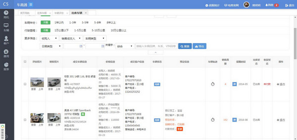 管理体现:涵盖二手车评估,采购,库存,销售,客户管理,财务管理全流程。