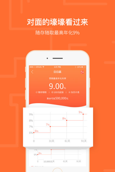 100元低门槛起投,随存随取当天生息,最多年化9%