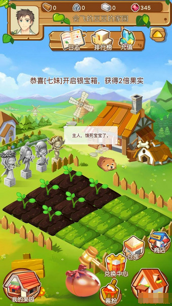 作为一款以农场为基础的游戏,种植肯定是主业。种植收获果实是最主要要的收入来源。玩过qq农场的肯定知道,其操作过程简单,流程是播种灯带种子发芽、生长、成熟。这这三个时期中可能会有虫灾、干旱、除草等农活要干,这些过程并不复杂,看下便可掌握。