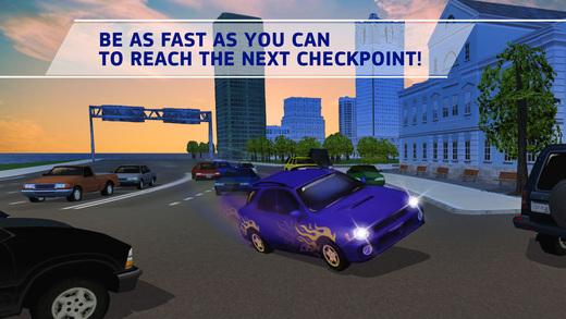 乘坐迷人的汽车穿过城市街道,尽可能快地到达检查站,并增加更多的时间参加博士城市赛车!