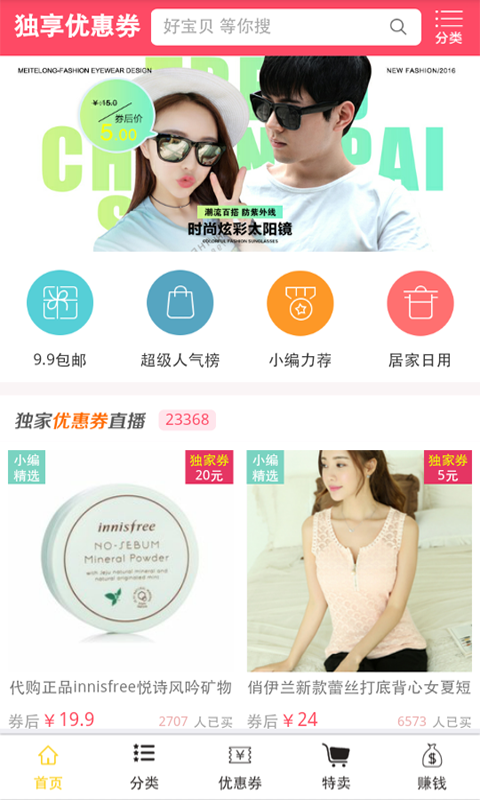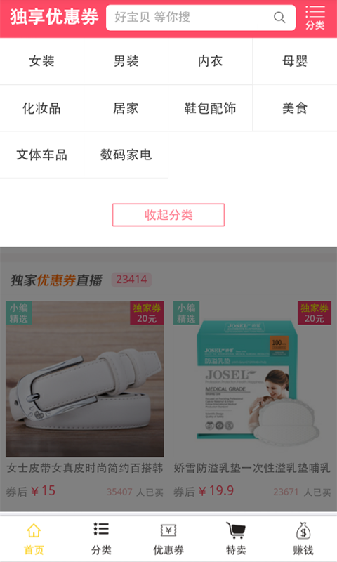 独享优惠券下载 v2.2 安卓版 独享优惠券是一款便捷的掌上购物优惠券领取以及商品购物的平台。这里有海量的商品在线购买,更有各类商品的购物优惠券,为用户节省一笔不小的小开销。