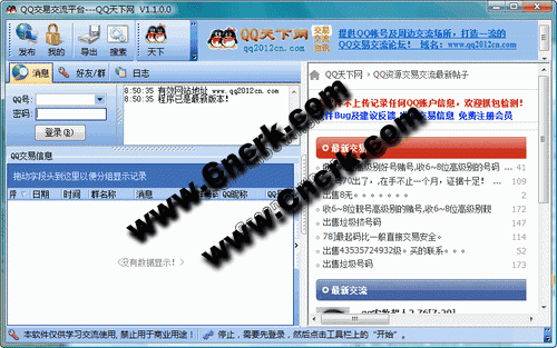 QQ交易交流平台 V1.1 简体中文绿色免费版 使用QQ登录,在群里发的QQ资源供求信息,会自动发布于QQ天下网,让信息最大化