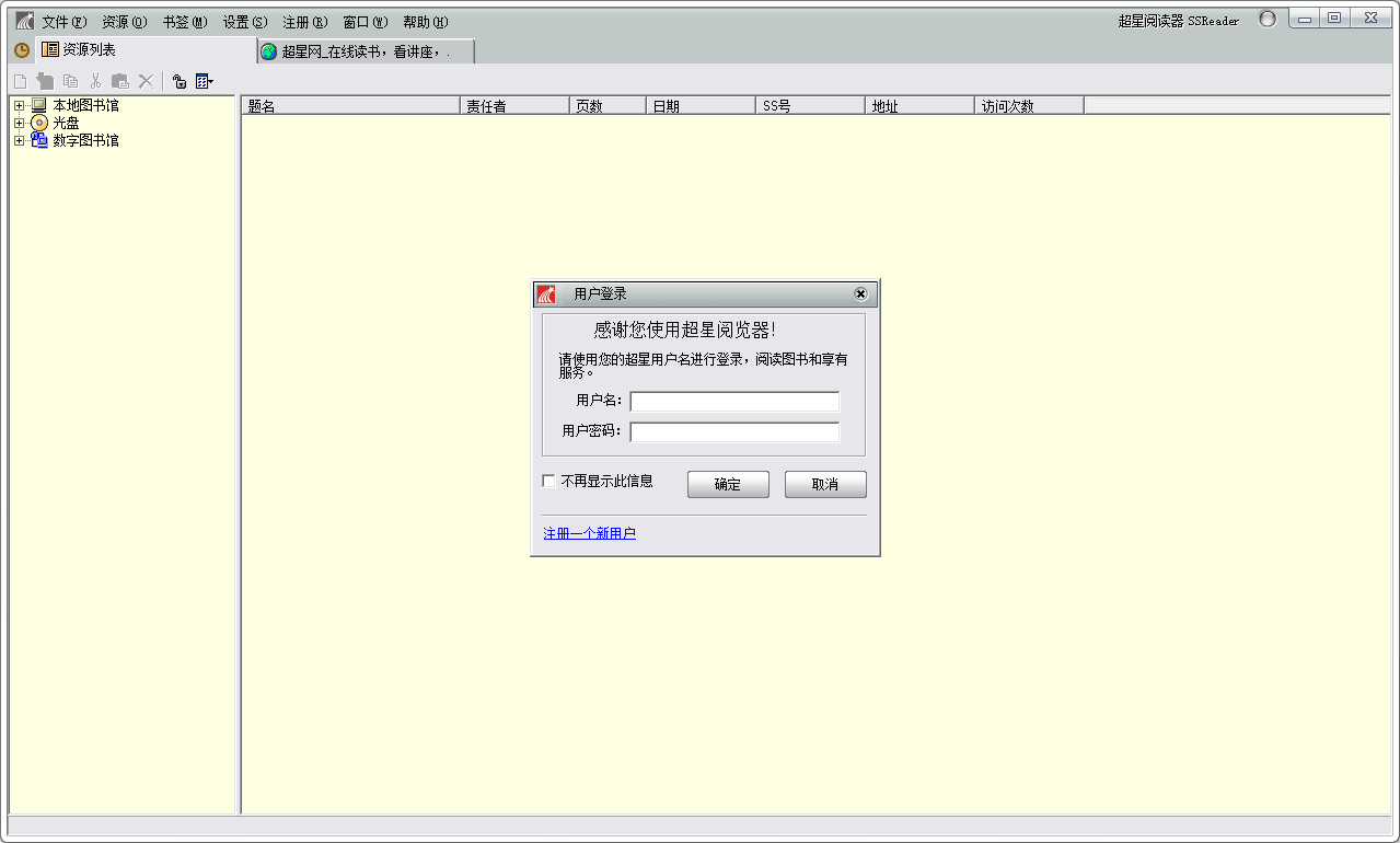 2、启动超星阅览器,进入主界面。