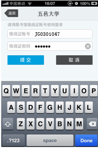 第二步:输入“我的图书馆”的账号及密码(账号是校园卡上的学号,密码是“我的图书馆”的登录密码),点击登录,即可成功进入移动图书馆。