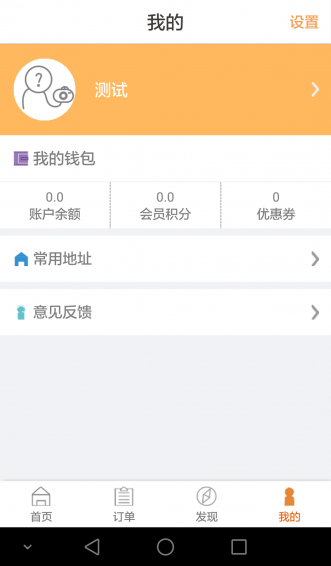 【我的】可快速查看使用者的余额、积分、优惠劵,快速修改服务地址并提供意见。