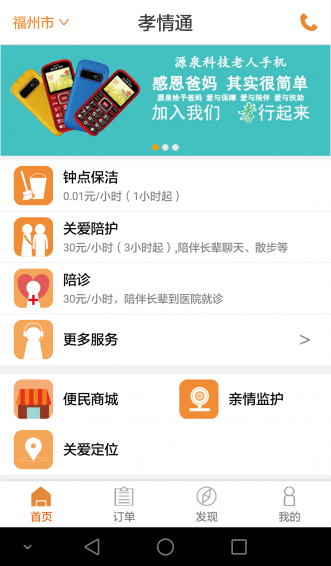 孝情通app是福建源泉信息科技为广大养老机构开发的一款居家养老o2o应用,子女可以通过手机为父母或其他长辈预约上门进行服务,服务内容包括清洁、做饭、外办、理发、护理、维修等,并且服务结束后能够对服务过程进行评价。这款应用主要提供以下功能: