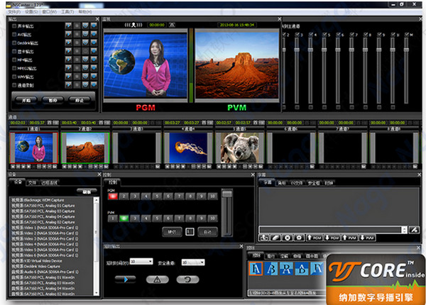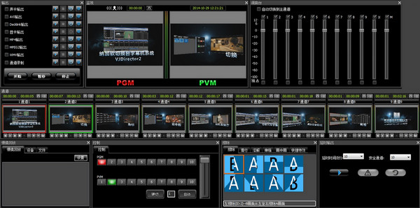VJDirector2可记录、播出实况视频,完美替代广电级导播一体机,并可提供完美二次导播效果,达到广播级的电视特效。 VJDirector2作为一套符合广电级功能需求的一体化导播系统而不是单纯的切换台,可完全替代传统硬件产品完成【视频切换】、【字幕】、【台标】、 【自动播出】、【虚拟演播厅构架】、【实时保存】、【调音台】等功能。其包括特技切换、CG文件编辑器, VGA采集、摄像采集、视频采集、网络摄像头采集、字幕机、抠像、网络直播系统和线性编辑系统等。【官方介绍】