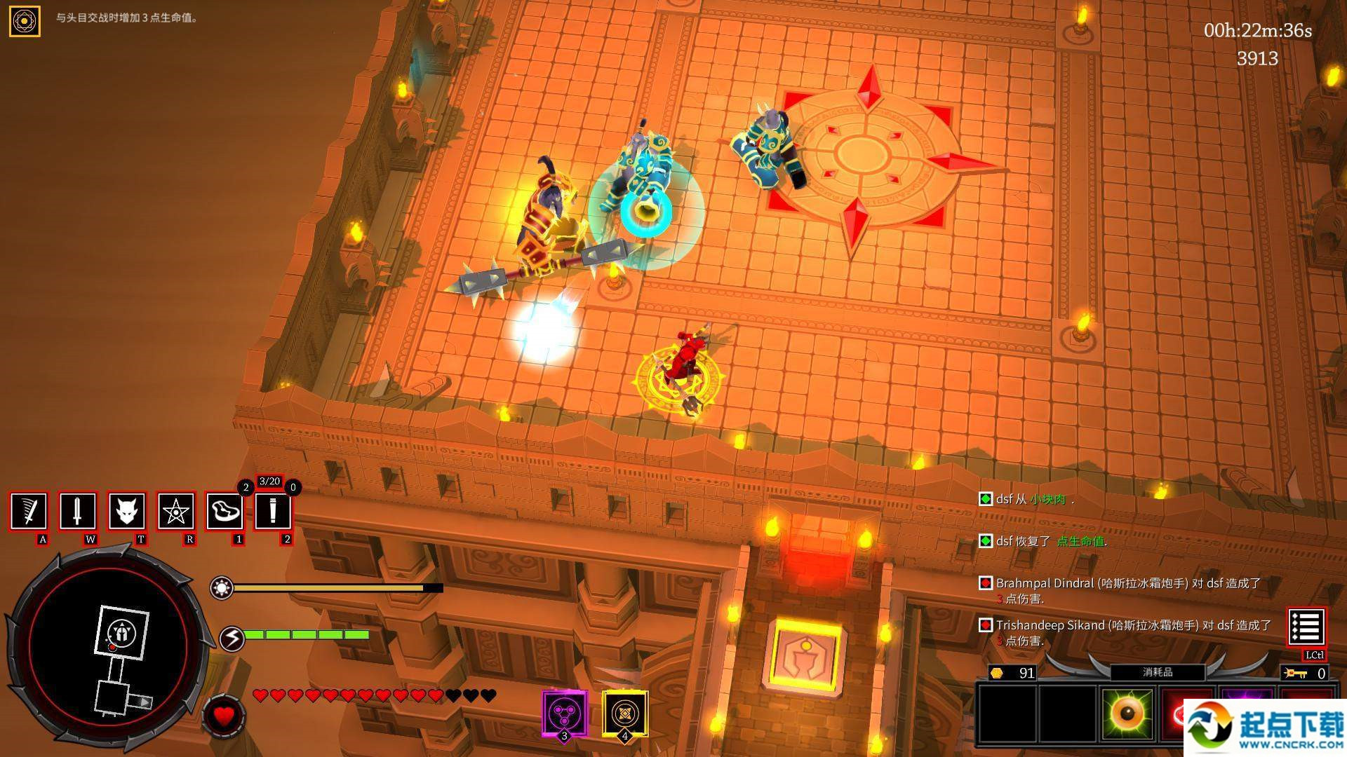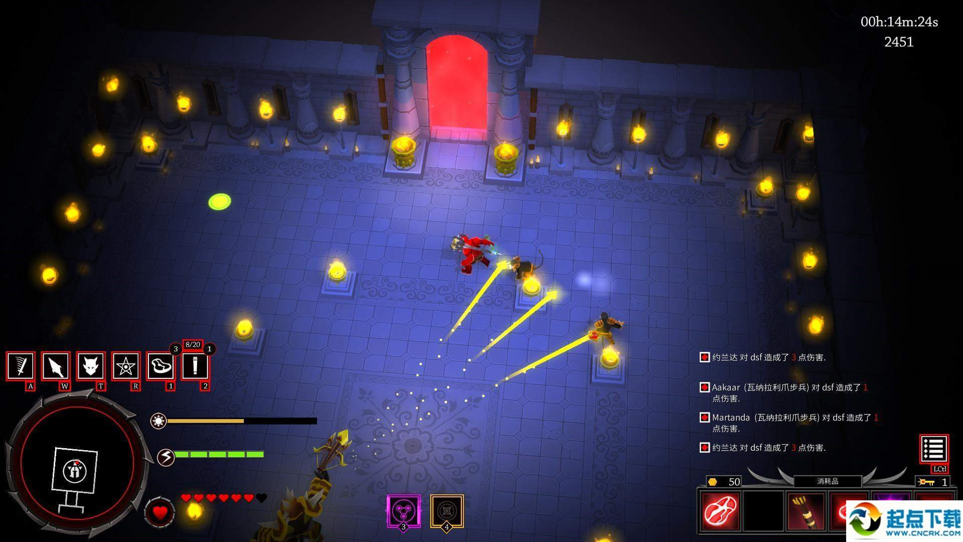 2.boss会发向四周发射带燃烧效果的箭矢,由于密度不大,非常容易躲避;
