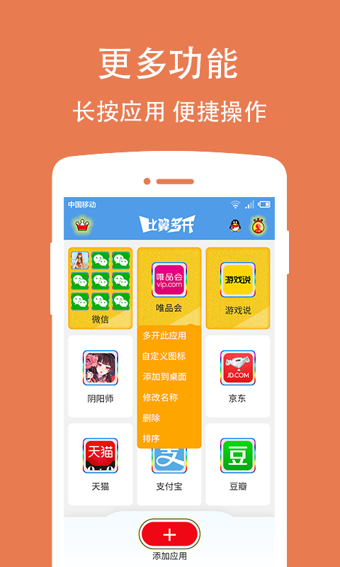☆ 微商的伴侣,最快速的应用无限多开,极速响应☆ 一部手机上同时登录无限个微信/qq/微博/陌陌/探探/快手/..