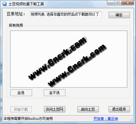 土豆网和优酷网都是相当优秀的网站,其上有众多资源。而官网提供的下载工具,但是只能一个个下载,有时候需要下载某个豆单或者专辑的所有视频,一个个下载显然效率过低。这个工具只是调用了官方下载工具而已,不是地址嗅探工具。使用需要安装相应网站的下载工具。