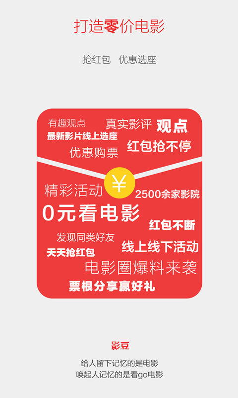 【抢红包 看0元电影】 红包每天放送,转发、分享,好友也能拿福利。 红包无处不在,先抢先得,你看电影我来买单。【电影圈 分享美好生活】 可以记录和分享生活的美好,找到身边有共同话题的人。