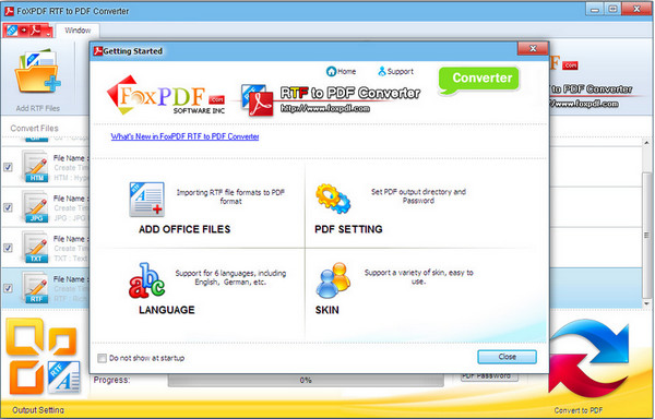 Rtf转换到PDF转换器能批量转换RTF, TXT, JPG格式到PDF, 节省时间, 同时支持多核CPU,让你转换的过程中更快捷更有效。 Rtf转换到PDF转换器可以设置个别或所有输出PDF打开密码。