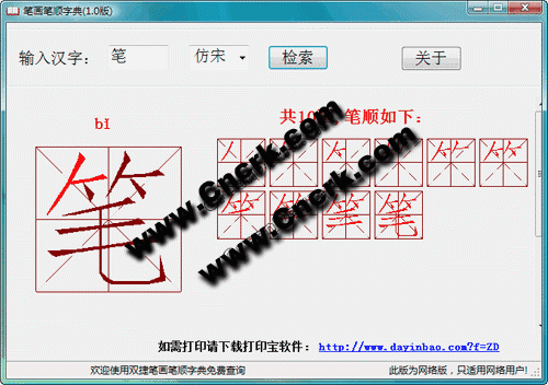 笔画笔顺字典 V1.0 简体中文绿色免费版 笔画笔顺是汉字基础知识,譬如查《新华字典》等工具书,不知笔画笔顺的次序是不行的小学语文教学中字,汉字的笔画和笔顺又是重点中的重点。很很多家长常常忘记一些汉字的正确笔画和笔顺了,如果能运用电脑和网络的优势来教孩子学习汉字笔画和笔顺,一定会激发孩子学习的积极性,收到意想不到的效果。