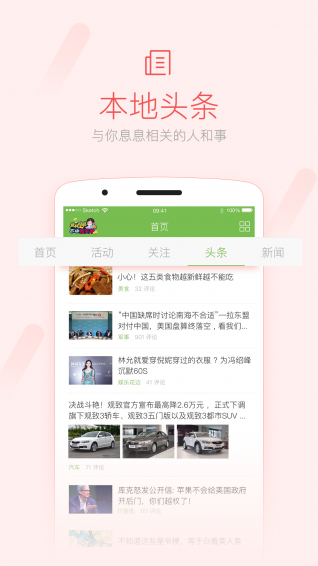 1、本地新闻:本地发生的新鲜事,突发事件,停水停电,民生信息发布在这里统统不会错过!2、头条资讯阅读:除本地新闻外,更有众小编为您精心打造的精彩头条聚合,微信段子,鸡汤美文,笑话动图,一网打尽。
