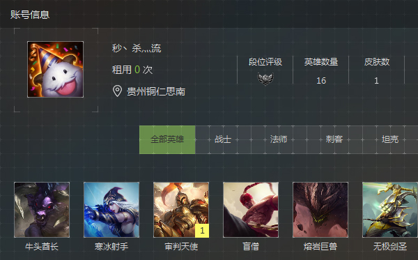 当搜索到符合条件的账号后,您可以点击中上方的账号(召唤师)头像,查看该召唤师的详细情况。