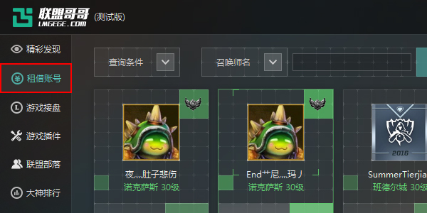 联盟哥哥是电脑上专为LOL英雄联盟打造的一个租号平台。你想与你的小伙伴一起开黑打游戏吗?奈何没有帐号,新玩一个号又耗时间!没关系,赶紧来小编这里下载一个联盟哥哥LOL租号平台,轻松租到30级,而且各种段位,有皮肤的你都可以拥有。【软件特色】