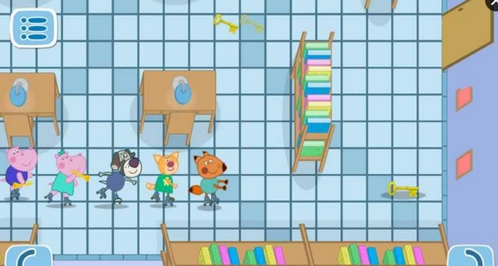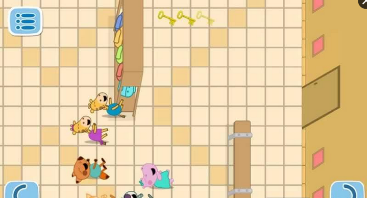 学校里的孩子们又皮起来了,河马姐弟带着一帮同学开始了在学校的恶作剧。恶作剧的参与者们排成一列穿着轮滑鞋在学校里横冲直撞收集钥匙,但是如果撞到墙壁或是课桌椅的话恶作剧可是要失败的哦。感兴趣的话就快来试试吧。