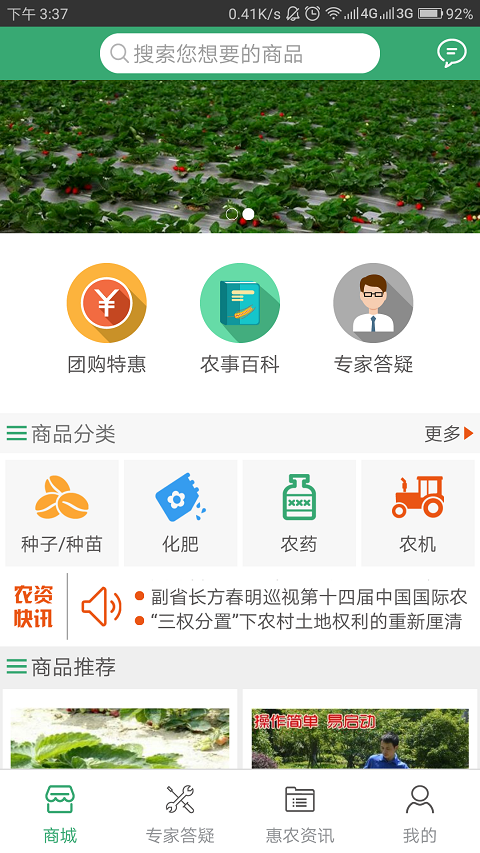 伙谷农资,集农业生产资料销售、农技专家问答和惠农资讯于一体,让农民朋友足不出户就可以在线购买农药、化肥、农机等农资;同时平台邀请多领域专家对用户提出的种植和养殖等问题进行专业解答;并且推送实时的农业政策资讯、新闻资讯、市场行情和农业气象等信息。帮助农民朋友更方便、更快捷购买商品和解决技术难题。【软件特色】