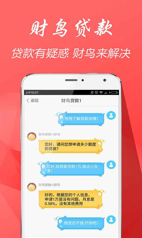 【完美体验】每个人都有缺钱的时候,无论是房贷、车贷、信用贷,财鸟立刻解决你的资金需求。