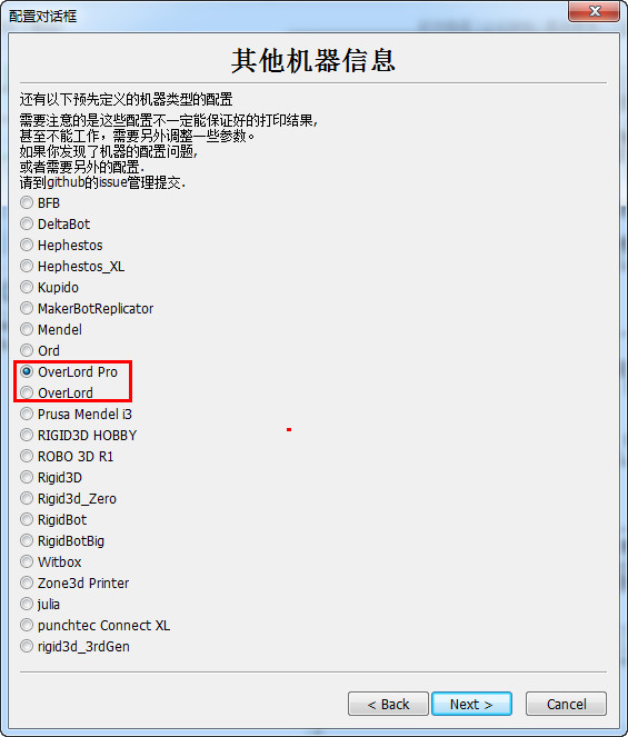6.选择机器界面选择Other(Ex:RepRap,MakerBot,Witbox)单选框。