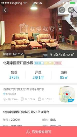 我们看到满意房源,点击[咨询爱家顾问]选择[爱聊咨询]通过爱聊与经纪人进行在线沟通。这一过程不会透露手机号码、姓名等任何私隐信息,而且,沟通不受时间、地域限制,沟通记录会保存在个人“爱聊”聊天记录中。解决了大众担心泄露隐私、担心骚扰的困局,打破信任障碍,让消费者与置业顾问能够随时随地轻松聊房