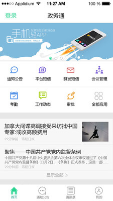 政务通是一款智慧办公软件,通过电脑、手机多平台操作,实现数据互通互联,进一步推动无纸化智慧办公建设。政务通以安全通讯录、会议通知、三通通短信、新闻资讯等作为基本功能解决了现有纸质通讯录的不方便性,以及日常通知的繁琐性和不确定性。工作动态、审批等功能都是紧紧以人为核心展开,软件采用即插即用式构架,打造积木式的定制Saas服务平台。