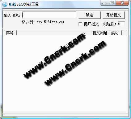 蚂蚁SEO外链工具可以快速准确的将你的网站提交到1000个网站目录,增加1000个外链,支持多线程、循环提交,每搁3天使用一次,效果最为明显