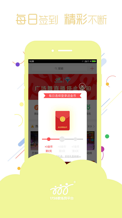 【金币】每日签到和邀请舞友注册广场舞中国,即可免费领取金币,兑换精美礼品。
