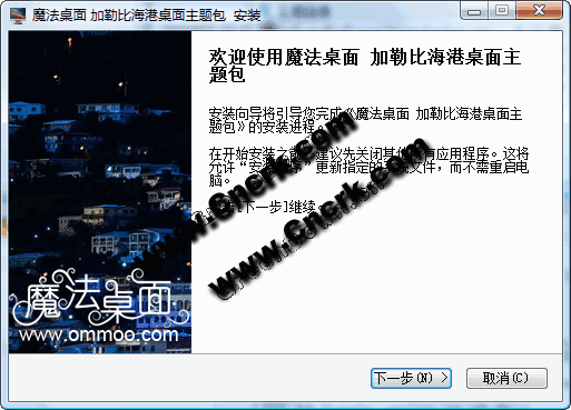 魔法桌面原创xp、vista、windows7通用版加勒比海港桌面主题,主题用蓝色透明的质感表现沉静的加勒比海港的深夜,体现出了加勒比海港的人文美景