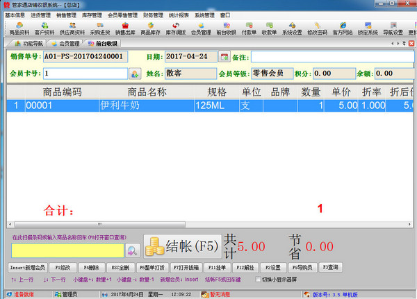 管家通店铺收银系统是一款实用且非常好用的店铺收银软件。该软件拥有商品管理、会员管理、收银结算、财务管理、库存管理以及进退货管理等功能,可为管理者提供强大的收银管理。