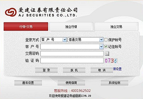 爱建证券超强版集行情、交易、资讯为一体,爱建证券超强版功能强大、操作方便、界面友好、支期货行情,实时播报、滚动资讯、市场雷达多种登陆模式,爱建证券超强版将为您带来全新的操作体验,更有绿色通道功能可以帮您突破火墙的限制,新增退市管理模块。【功能介绍】