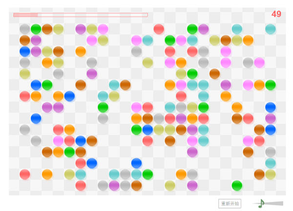 4、时间用完或再无可以连线的豆豆,游戏结束。