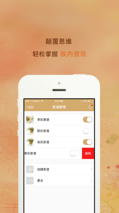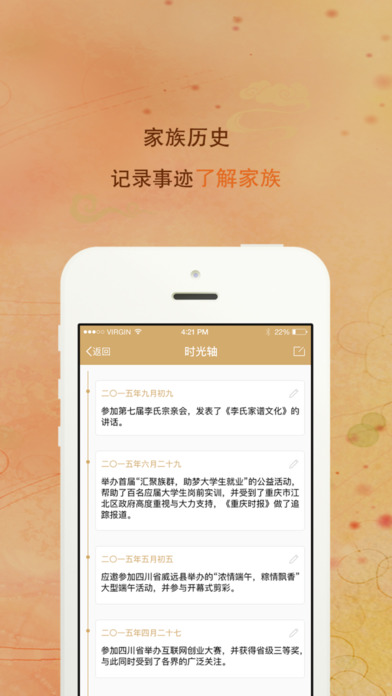 你家有谱了吗?找你家谱圆家谱之梦! 这一次团聚,将不再遗忘和失联!三分钟时间,拥有家谱族谱宗谱!一人修谱全族共享,多人参与家兴族旺;找你开放公有家谱,亲友共谱盛世华章!【功能介绍】
