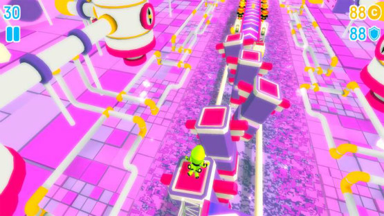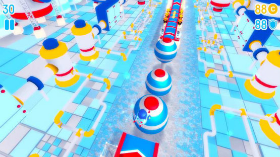 《机器人障碍赛(Oopstacles)》采用了无限挑战的模式,玩家们进入游戏后,选择好机器人,然后就开始奔跑挑战,面对前方层出不穷的障碍,也一直勇往直前。