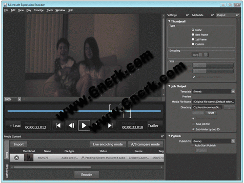 Expression Encoder 是一个高级音频/视频编码和实时广播应用程序,尤其适合用来生成充分利用 Microsoft Silverlight 播放应用场景的丰富图形和交互功能的内容。您还可以生成适合在其他 Web 播放应用场景或便携式设备上播放的 Windows Media 视频和音频文件。