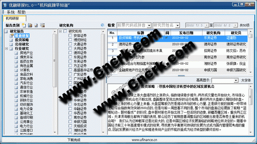 优融研报是一款基于Windows系统的专业研究报告服务平台,把海量、实时更新的机构研究内容转化成简单便捷的分析树状逻辑,让您更加精准地把握投资市场主力机构趋势,快速捕获市场机会和投资标的,是您不可多得的投资好帮手!