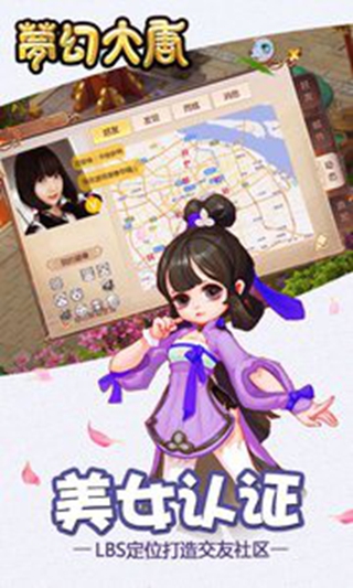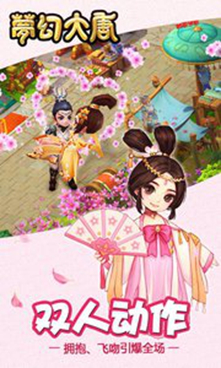 《梦幻大唐》手游主打寻缘特色,搭配LBS定位技术,让玩家迅速找到ta的真实位置,邂逅属于你的美妙之缘。同时开启趣味比武招亲系统,不限角色男女均可参加一展拳脚,凭借实力赢得君子佳人倾心。一键示爱功能,不仅能在公共地图向心仪之人求婚送花,在战斗中亦可对心仪的ta热情告白,真爱无需等待。更为两情相悦的玩家准备了唯美盛唐婚礼,让全世界见证你们的爱,同时赠送情侣双人坐骑、情侣特殊互动动作、情侣时装、情侣家园等等,打造二人专属甜蜜空间。《梦幻大唐》手游更推出好感养成系统,可与任意明星NPC亲密互动,刷爆好感触发特别隐藏剧情,是一款可以恋爱养成的回合手游。