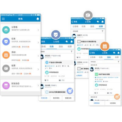 * 任务:清晰的工作分配,无论是老板或主管都能方便追踪进度* 活动:发布会议或培训通知,统计参加活动的人数,轻松办活动