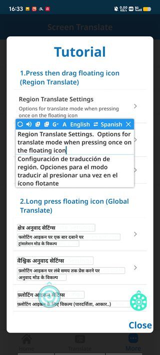 ScreenTranslate是一款具备多语言支持能力的手机屏幕翻译工具。借助这款工具,用户可以实时翻译手机屏幕上呈现的任意外语内容,无论是图片里的文字,还是文档中的信息,都能按照用户的选择进行区域翻译,并且还提供对照模式,极大地方便了用户查阅。该软件能够支持英语、日语、法语、德语、意大利语、西班牙语等在内的十多种语言,在各类不同语言的学习与工作场景中都适用。即使用户在进行游戏、观影等娱乐活动时,也可通过悬浮功能轻松实现翻译,丝毫不会影响原本的娱乐体验。
