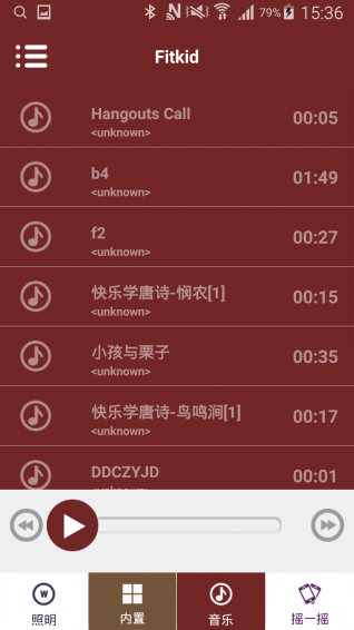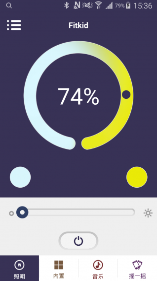 Fitkid智能护眼灯 通过蓝牙4.0的方式控制智能护眼灯。 支持颜色、亮度、音乐调整。 用户还可以自定义模式灯光,设置16种颜色轮流变化。 手机播放音乐,灯光根据音乐节奏闪动。 还可以设置闹钟,定时亮灯和关灯。 摇一摇可以切换歌曲。 还有强大的语音识别功能,可以识别“开灯、关灯、红色”等指令。
