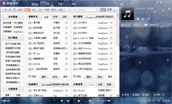 多米提供最方便快捷的音乐管理功能,能一键记录您所喜欢的音乐,列表管理操作简单、功能强大。