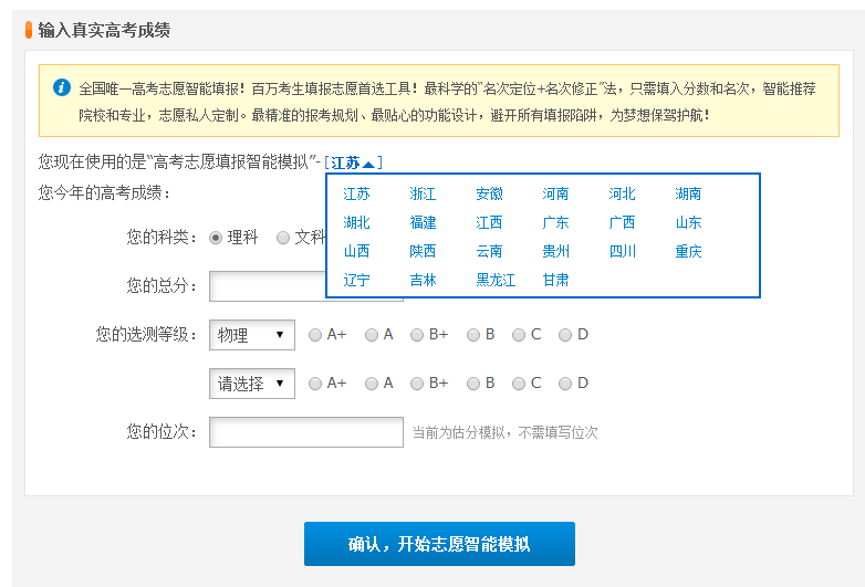 1、打开高考志愿填报智能模拟系统2、进入模拟系统,输入你的真实高考成绩