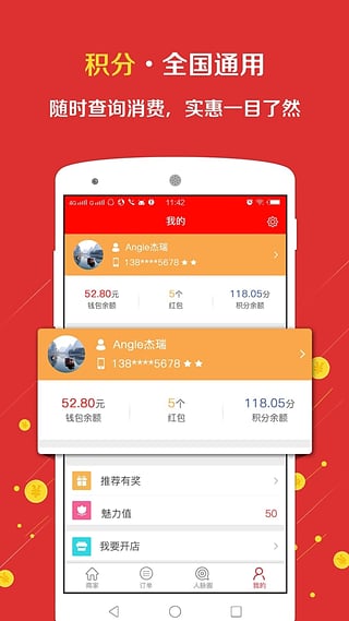 1、每天打开APP,均有机会获得商家发送的红包;2、查询本地商家信息和优惠方案,每笔消费都省钱;