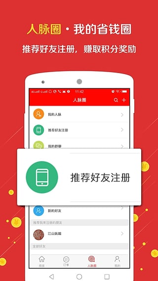 用户可主动推送好友注册,朋友消费可获得奖励,让社交与商务完美结合。