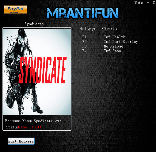 暴力辛迪加四项修改器,基于游戏内容由MrAntiFun制作,使用后可获得无限生命、无限能量、无限子弹等七项功能,可助你纵横游戏,需要的玩家朋友们可不要错过了。