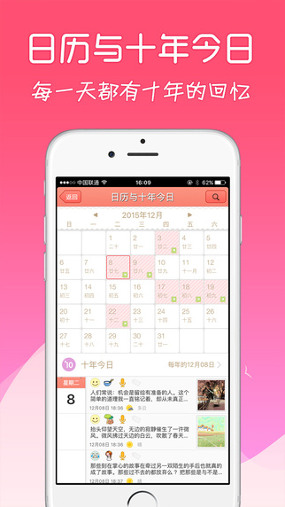 日历详实丰富,还有十年今日,这个是个很不错的功能,能看到过往的历史。心语日历能换主题,随意挑选自己喜欢的主题,还能个性化日记本,女生、妈妈、白领通通都适合,准妈妈们还可以用它来记录备孕时间以及未来宝宝的成长历程。