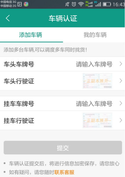 返回首页,点击“实名认证”“车辆认证”,输入相关信息、进行提交