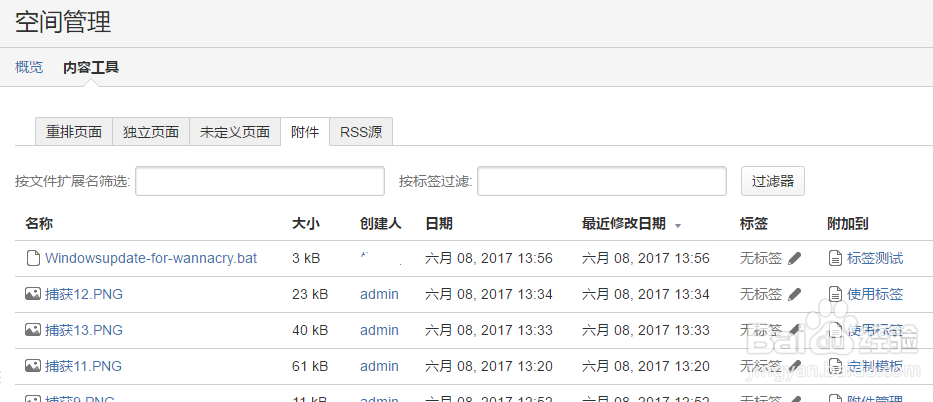 可以查看到空间所有的附件以及可以给各附件添加标签