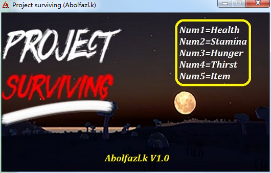 生存计划五项修改器 免费版 生存计划修改器是专为《生存计划》游戏玩家们所提供的游戏修改工具。该工具是由ABOLFAZL.K制作分享的生存计划修改器,使用后获得无饥饿、口渴等效果。