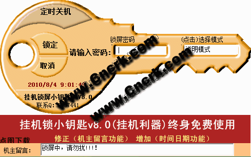 1: 挂机锁小钥匙8.0主要适合网吧/上班/公共场所/家中使用。